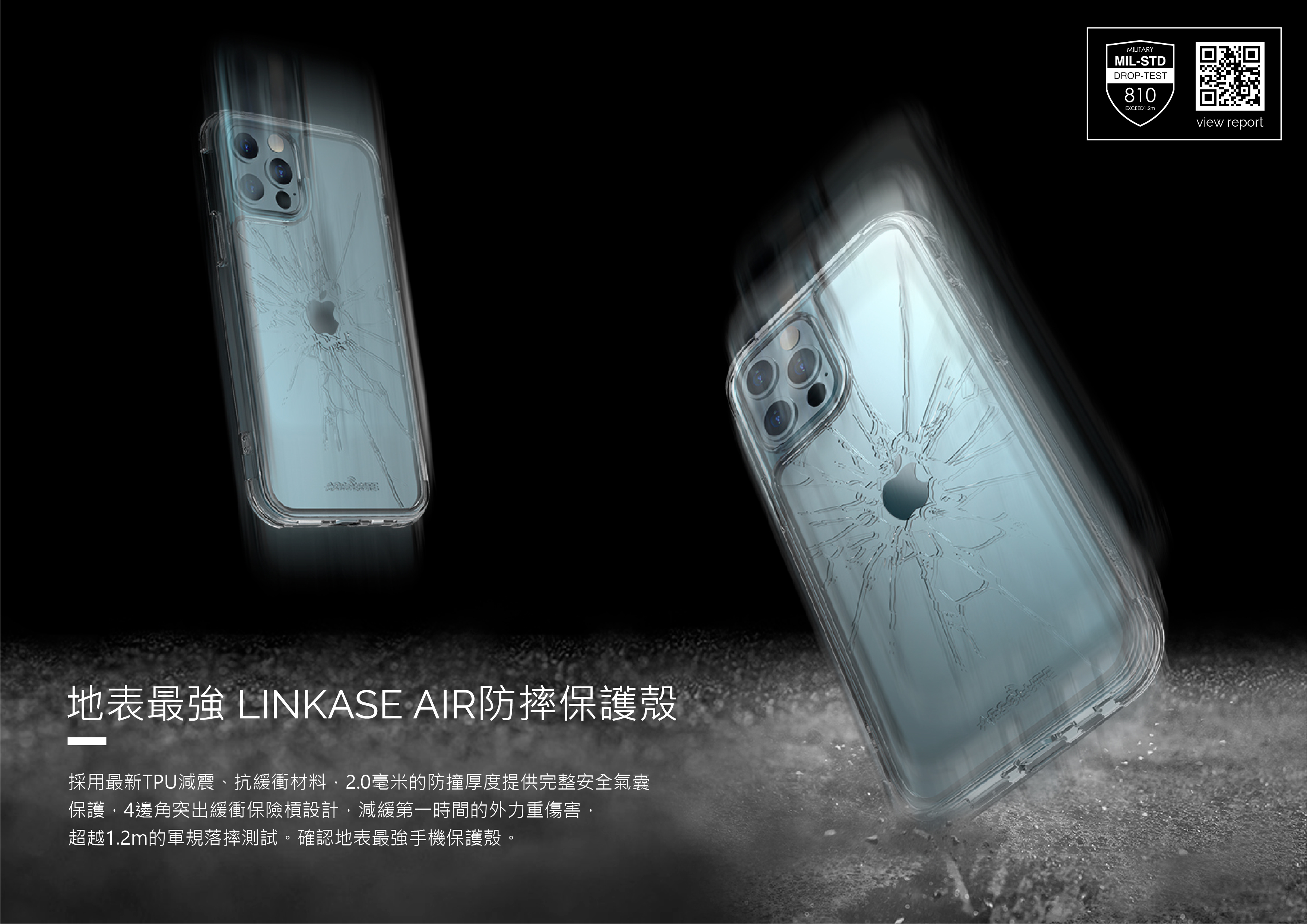 ●LINKASE AIR 軍規防摔康寧玻璃保護殼 for iPhone 12 / 12 Pro