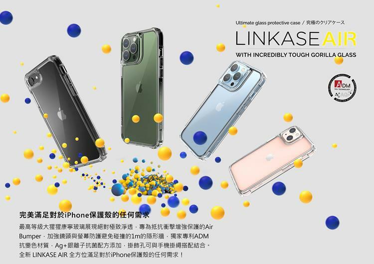 ●LINKASE AIR 軍規防摔康寧玻璃保護殼 for iPhone13