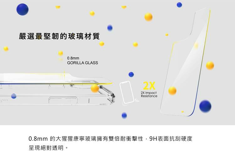 材質:玻璃殼-玻璃原料採用奈米康寧大猩猩玻璃、ADM專利TPU軟性塑料、高效能銀離子抗菌劑
