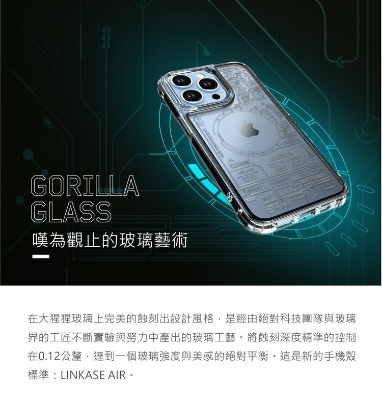 | 材料 : | ADM專利TPU軟殼邊框+蝕刻康寧大猩猩玻璃 |