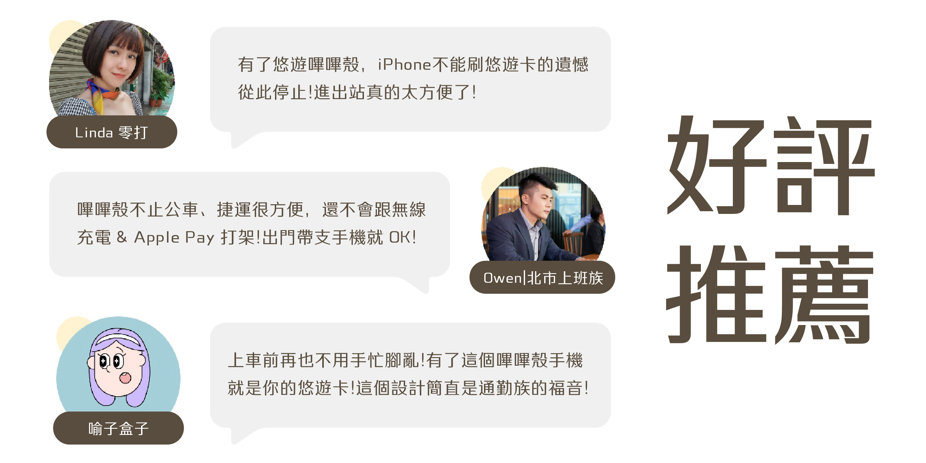 - 悠遊卡手機殼使用上等同於一般悠遊卡,可綁定悠遊付,儲值月票